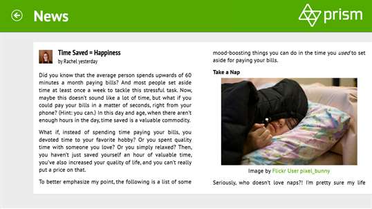 Download the free app for your phone today! Prism helps you stay on top of your money, your bills, and your pay. Now, the company has updated their app for windows 10 mobile with a revamped design and new features. Ready for a new way to bill pay? Prism is a bill management app that lets you see and pay all of your bills from a single app.